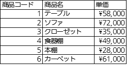 (2) 「Sheet2」に以下のような表を作成しましょう。